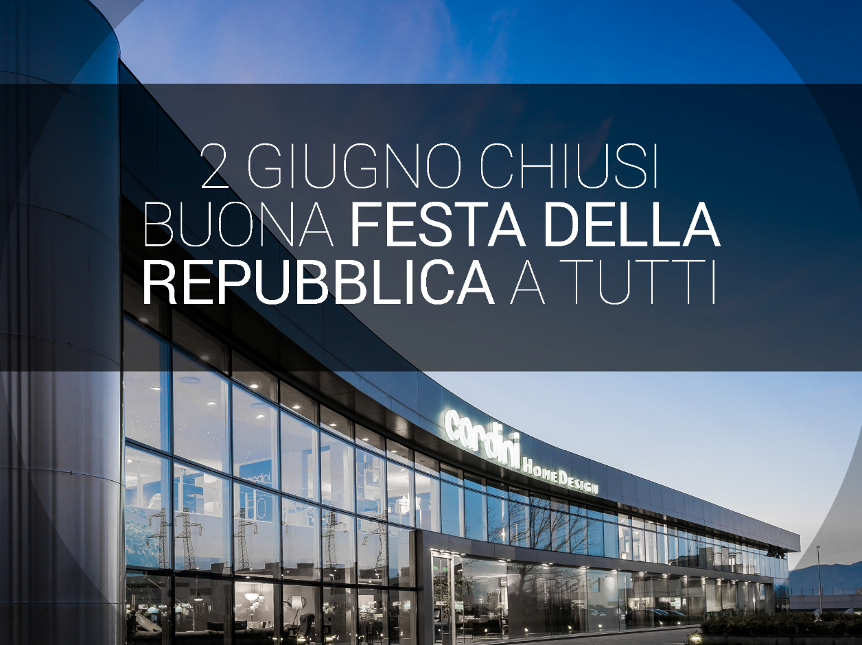 Nell'augurare a tutti voi una splendida giornata in occasione della Festa della Repubblica, vi comunichiamo che lo showroom rimarrà chiuso nella giornata di venerdì 2 giugno. Saremo invece aperti con i consueti orari sabato 3 giugno.